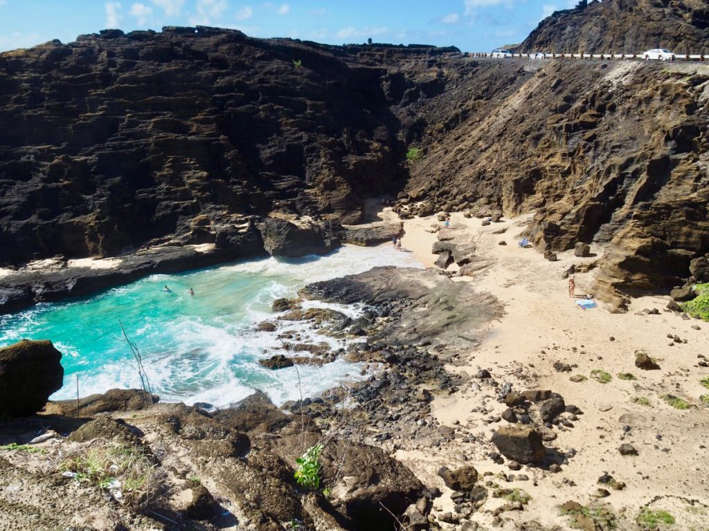 ระหว่างเดินทางกลับมายังไวกิกิ เรามองเห็นหาด Halona Cove จากด้านบน และไม่มีทางเข้า ป้ายประกาศเตือนอันตรายถูกติดไว้มากมาย นักท่องเที่ยวต้องปีนหน้าผาหินลงไปที่ชายหาด สถานที่แห่งนี้โด่งดังจากภาพยนตร์หลายเรื่อง วันนั้น นักท่องเที่ยวบางคนบ้างนอนอาบแดด บ้างลงโต้คลื่นท้าทายความรุนแรงของทะเลในฤดูหนาว ส่วนผมและลูกชายขอยืนซึมซับบรรยากาศอยู่ห่างๆ
