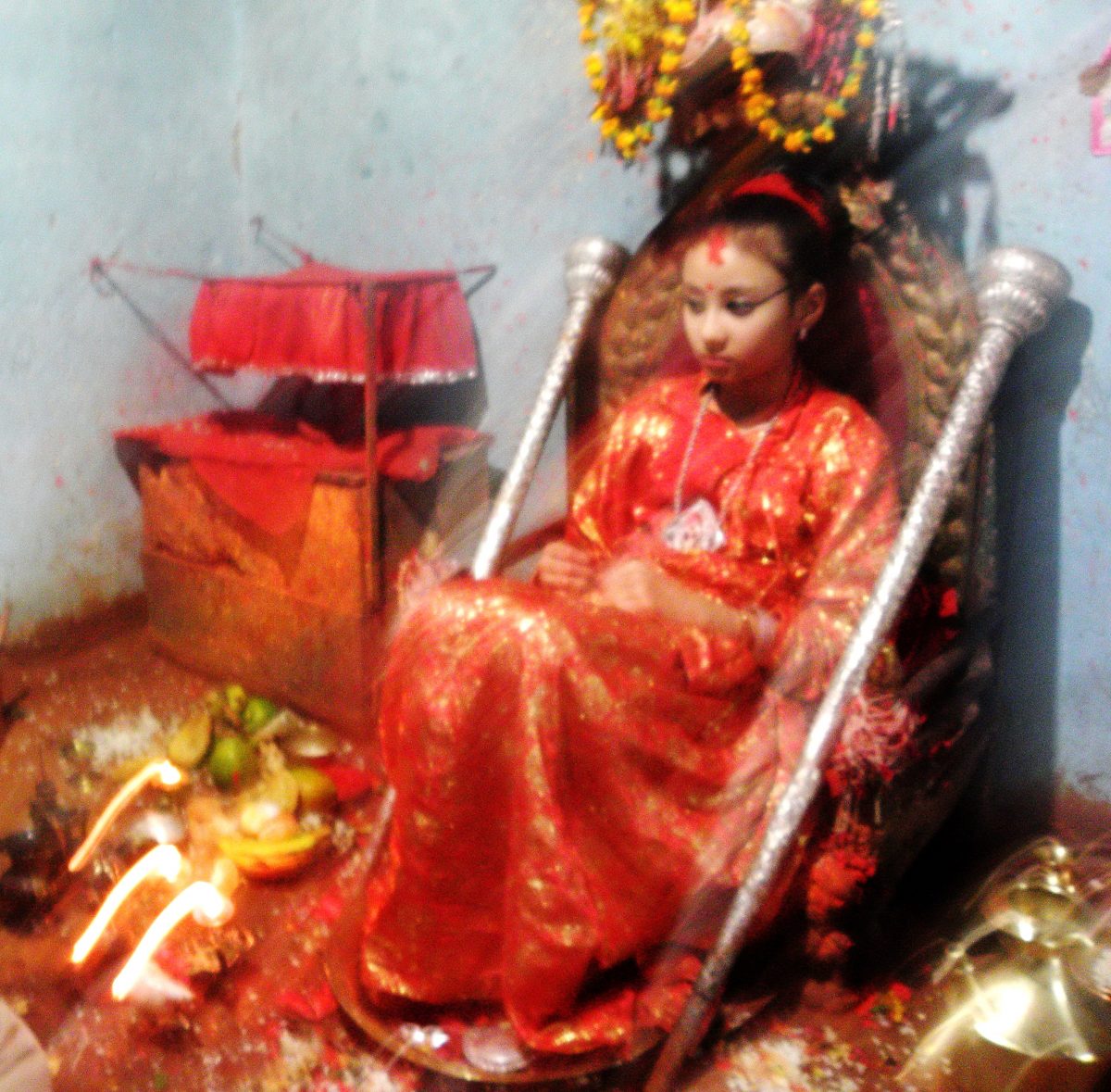 ผมก้มลงกราบเธอด้วยอาการประหม่า ขณะที่เธอทอดสายตานิ่งและเฉย ก่อนจะใช้นิ้วหยิบผงสีและเมล็ดข้าวมาเจิมที่กลางหน้าผากของผมอย่างรวดเร็ว แทนความหมายว่าเทพนารีองค์นี้ได้ประทานพรให้ โดยไม่ต้องเปล่งเสียงกล่าวมนตราใดๆ ออกมาแม้แต่คำเดียว นี่เป็นครั้งแรกในชีวิต ที่ได้เข้าใกล้ชิดสิ่งศักดิ์สิทธิ์ที่ชาวเนปาลแห่งเมืองลลิตาปูร์คารพนับถือสูงสุด แม้เธอจะมีความสำคัญเป็นอันดับสอง รองจากกุมารีหลวงแห่งนครกาฐมาณฑุ แต่เป็นที่ทราบกันดีว่ากฎระเบียบในวังกุมารีหลวงนั้นเข้มงวด จนยากที่ใครจะเข้าถึงองค์อย่างใกล้ชิดเช่นนี้ได้ นอกจากไปยืนเฝ้าคอยให้ท่านปรากฏองค์ที่ช่องพระแกลของพระราชวัง เพียงชั่วประเดี๋ยวประด๋าว