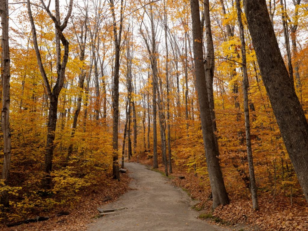 หลังจากผ่านน้ำตกชั้นบนมาแล้ว เรากลับมาสู่ทางเดินในป่าท่ามกลางต้นไม้สองข้างทางที่กำลังเปลี่ยนสี เราเดินชมธรรมชาติข้างทางแบบสบายๆ ใบไม้สีเหลืองทองปูพรมตั้งแต่บนพื้นจนถึงยอดไม้ทำให้การเดินที่เหลือเพลิดเพลินไม่น้อยกว่าช่วงแรกเลย วันนี้เรากลับไปที่ campground และใช้เวลาช่วงเย็นรอบกองไฟอุ่นๆ ทำอาหารง่ายๆ