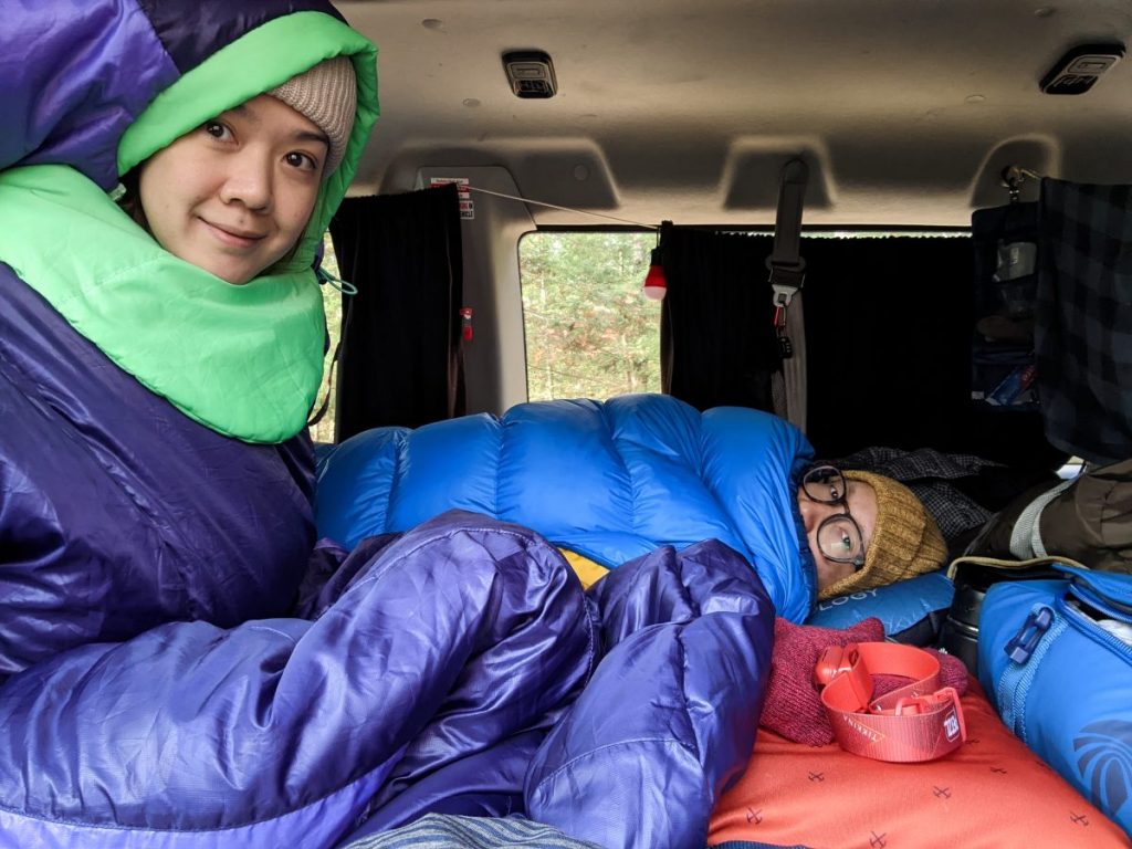 แสงแดดอ่อนๆที่ส่องเข้ามาในรถไม่สามารถทำให้เราลุกออกจากที่นอนได้ เราตั้งใจนอนตื่นสายเป็นรางวัลแก่การปีนเขาอันยาวนานเมื่อวาน วันนี้เป็นวันสุดท้ายของทริปอีกทั้งยังเป็นวันสุดท้ายที่ campground แห่งนี้จะปิดลงในฤดูหนาว แล้วค่อยเปิดรับ campers อีกครั้งในฤดูใบไม้ผลิปีหน้า