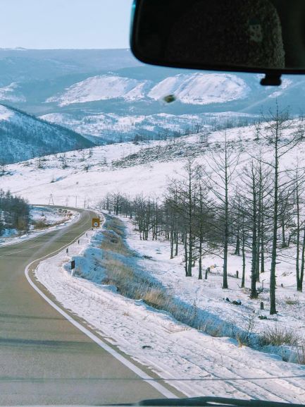 ในเดือนที่เราเดินทางไปถึงคือต้นเดือนกุมภาพันธ์ ซึ่งเป็นเดือนที่หนาวจัด ทุกลมหายใจที่ไม่ได้ผ่านหมวกคลุมหน้าหรือระบบปรับอากาศ มันเย็นเยือกจนปวดศีรษะจริงๆ ครั้งแรกก็อยากสูดอากาศแต่พอลงจากรถยนต์ได้ไม่ถึงห้านาทีก็ต้องรีบกลับขึ้นมาเพราะอากาศที่หนาวจนยะเยือกถึงถึงกระดูก