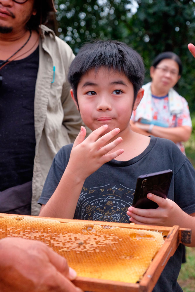 ถัดจากการเรียนรู้เรื่องราวของวัวแดง วีโจ้พาพวกเราไปยังชุมชนกลุ่มจิตอาสาท่องเที่ยวชุมชนบ้านแก่งปลากด เพื่อไปดูการเลี้ยงผึ้งป้องกันช้างป่าที่ลงมากินพืชผลทางการเกษตร ชาวบ้านได้นำแนวคิดการเลี้ยงผึ้งมาใช้ป้องกันช้างป่าด้วยการนำกล่องบรรจุผึ้งไปแขวนล้อมรอบพื้นที่เกษตรกรรม ซึ่งได้ผลดีพอสมควร แถมยังเป็นการเพิ่มรายได้ให้แก่ชาวบ้าน จากการขายน้ำผึ้งแท้จากธรรมชาติอีกด้วย