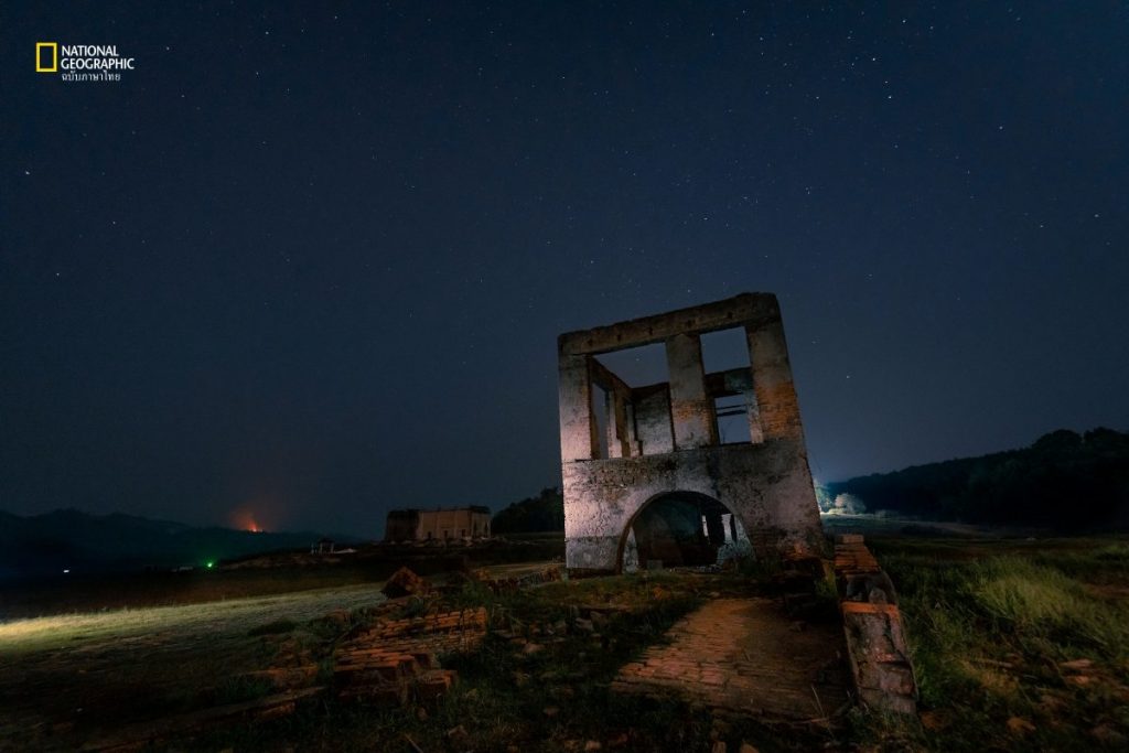 เมื่อความมืดอาบคลุมท้องฟ้า ดวงดาวในวันฟ้าเปิดส่องแสงระยับเหนือท้องฟ้าอำเภอสังขละบุรี แม้จะเป็นคืนเดือนหงาย แต่ก็ยังมองเห็นดวงดาวได้ชัดเจน เราจัดแจงอุปกรณ์ถ่ายภาพที่จำเป็น และลงเรือล่องไปตามแม่น้ำยามค่ำคืน ขณะที่เรือแล่นออกจากฝั่งแม่น้ำ ด้านหลังของเราเป็นสภาพอำเภอสังขละบุรียามค่ำคืน ที่เราไม่เคยมองเห็นจากมุมนี้มาก่อน แสงไฟจากท้องถนน และอาคารบ้านเรือนที่ตั้งอยู่บนเนินเขา สว่างไสวอยู่ไกลๆ เป็นภาพที่สะท้อนให้เห็นถึงความเจริญของเมืองแห่งการท่องเที่ยว