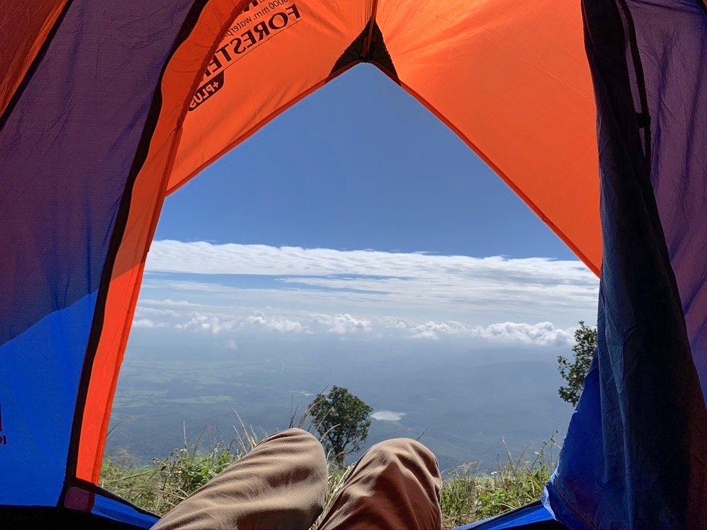 ระหว่างทางลงดอยความประทับใจในการเดินทางครั้งนี้ไม่ได้อัดแน่นไปกว่าใครที่ไหน สัมผัสธรรมชาติ ความรู้สึกร้อนหนาว มันมาแล้วก็ผ่านไป แค่อยากจะบอกว่าทุกครั้งที่มีโอกาสได้พบกับความงดงามตรงหน้าก็จงใช้เวลาดื่มด่ำให้เต็มที่ อย่างเช่นวิวเต็นท์ของผมในเช้าสุดท้ายก่อนเดินทางลงข้างล่าง ดวงอาทิตย์โผล่ส่งพลังงานมายังโลก และพาความอบอุ่นให้ผมด้วย