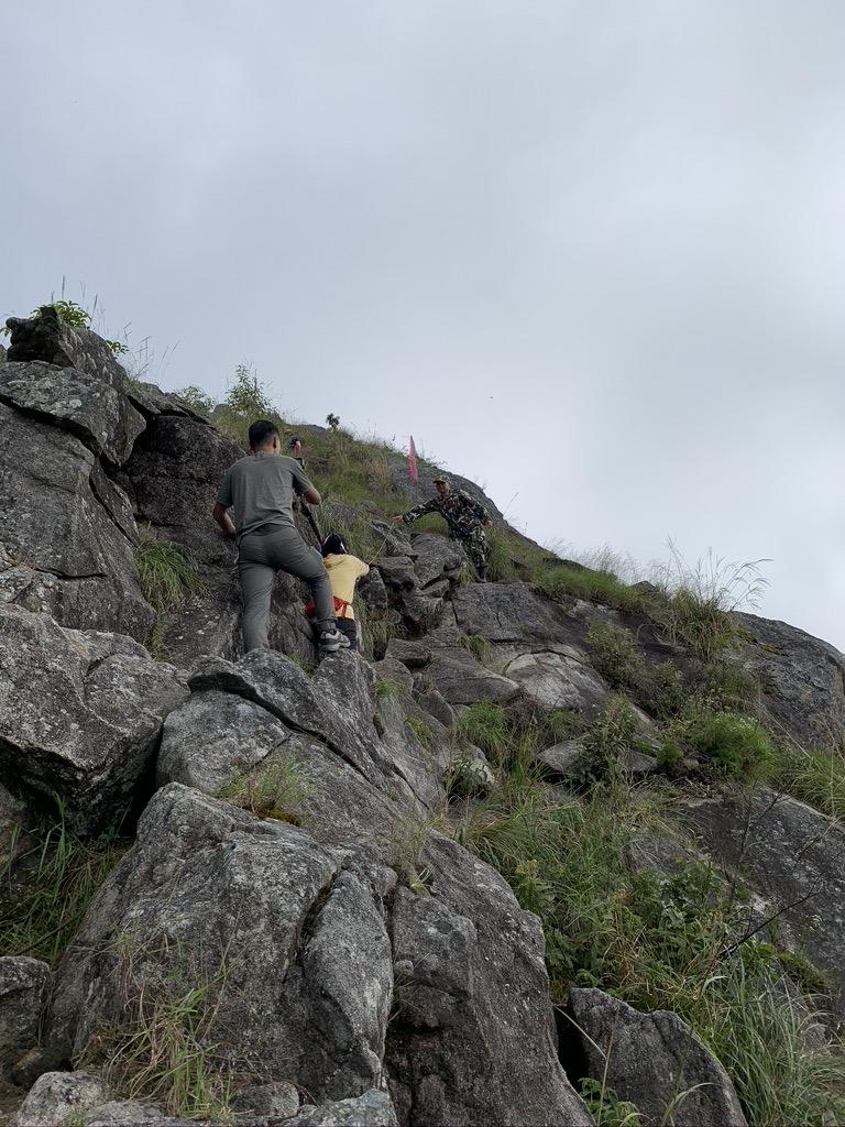 เป้าหมายของวันนี้สมาชิกทุกคนเตรียมพร้อมที่จะปีนขึ้นดอยหนอก ที่ห่างจากจุดกางเต็นท์ราว 3 กิโลเมตร จะเห็นเป็นหินก้อนใหญ่โผล่ท่ามกลางต้นไม้สีเขียวลักษณะคล้ายกับหนอกสัตว์ สภาพอากาศค่อนข้างแปรปรวนทำให้วิวดอยหนอกของผมนั้นมีเมฆหมอกสลับกันเป็นเลเยอร์ ต้องลุ้นว่าจะมองเห็นดอยหนอก ลุ้นกว่าระดับความชันของดอยหนอกที่จะปีนเสียอีก ถึงตรงนี้หากใครกลัวความสูงให้สบายใจได้เลย เพราะพี่ ๆ เจ้าหน้าที่ได้ทำการติดตั้งเชือกสะลิง และมีการเช็คสม่ำเสมอ สมาชิกทีมคนหนึ่งเมื่อปีนได้เกือบครึ่งทาง ถึงกับถอดใจไม่กล้าไปต่อ แต่ด้วยพลังของการบิ้วท์ ส่งผลให้ไม่มีใครต้องนั่งรอกลางแดดระหว่างทาง