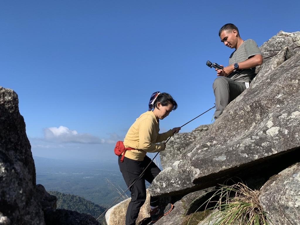 ดังนั้นผมพยายามทำลายความเครียดให้กับพี่เจ้าหน้าที่ และพี่อีก 2 คนว่า จริง ๆ แล้วบันไดก่ายฟ้า มีที่มาจากการที่สมัยก่อน บริเวณนี้เคยมีไก่ฟ้าอาศัยอยู่จำนวนมาก ชาวบ้านเลยตั้งชื่อว่า บันไดก่ายฟ้า ปรากฏว่าทุกคนเงียบกริบ น่าจะเครียดกว่าเดิม โดยเฉพาะพี่ผลัด ฮ่า ๆ