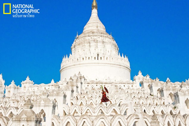 กล่าวกันว่าเจดีย์ชินพิวเมสีงาช้างที่ตั้งอยู่ใกล้กับเมืองมิงกุนออกแบบตามเขาพระสุเมรุ ซึ่งตามตำนานเชื่อว่าเป็นศูนย์กลางแห่งจักรวาล ภาพถ่ายโดย KEREN SU, GETTY IMAGES