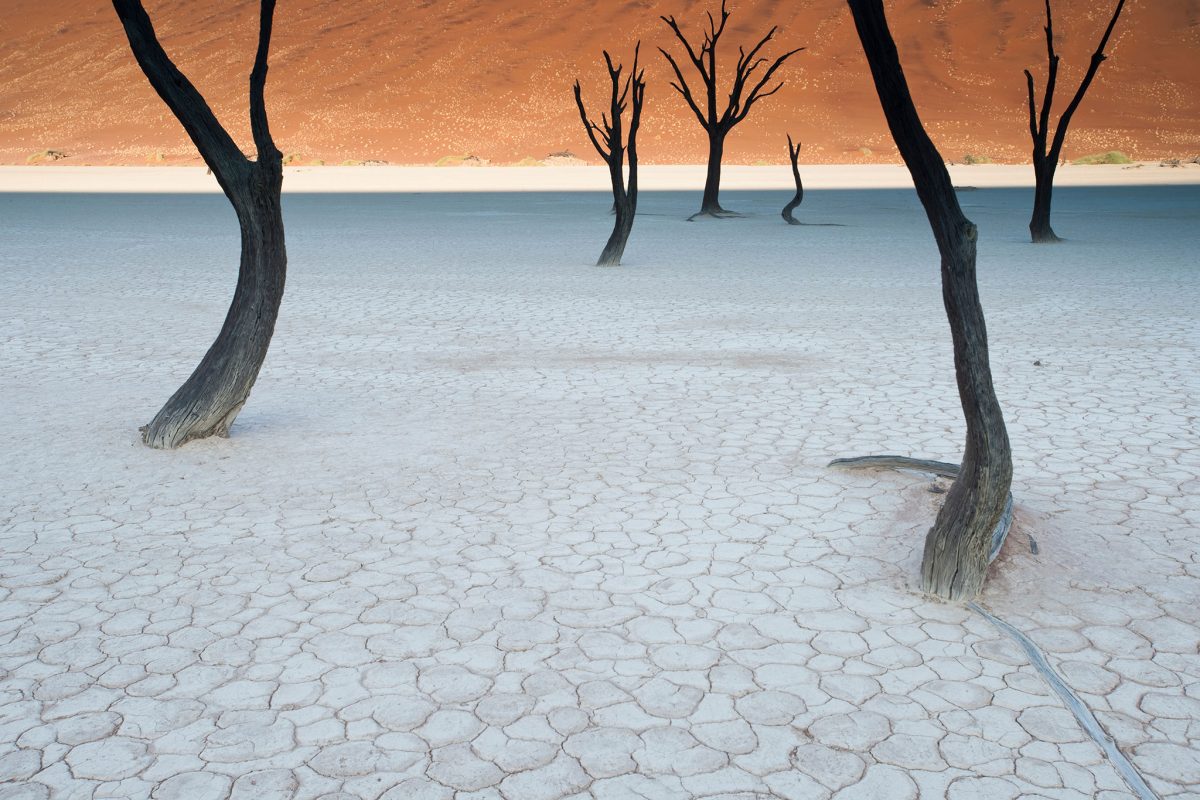 12:00 น. ณ นามิเบีย – ต้นคาเมลธอร์นผุดขึ้นจากดินเหนียวแห้งในอุทยานแห่งชาติ Namib-Naukluft โดยมีเนินทรายสีส้มส่องแสงในตอนกลางวันเป็นฉากหลัง Namib-Naukluft หนึ่งในอุทยานแห่งชาติและเขตสงวนอย่างเป็นทางการหนึ่งใน 16 แห่งในนามิเบียเป็นที่รู้จักจากเนินทรายที่สูงตระหง่าน ภูเขาที่ขรุขระ เมืองที่ขนานนามว่า ‘เมืองผี’ ริมชายฝั่ง และสัตว์ป่าดัดแปลงพันธุกรรม