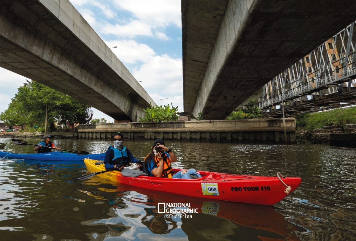 นอกจากความเพลิดเพลินแล้ว หนึ่งสิ่งที่การพายคายัคทำให้เราเห็นชัดก็คือขยะในคลอง “การพายเรือช่วยให้เราคิดถึงธรรมชาติในหลายมิตินะครับ อย่างเรื่องสิ่งแวดล้อม ถ้าเรานั่งเรือใหญ่ขับเร็วจะไม่เห็นขยะชัดขนาดนี้ ผมทำทริปพายเรือเก็บขยะหลายครั้ง ยิ่งเห็นยิ่งรู้ว่าการตามเก็บมันยากมาก ที่จริงต้องทิ้งลงให้ถูกที่ตั้งแต่ต้นจะจัดการง่ายกว่ามาก” คุณปกป้อง ขยายความ