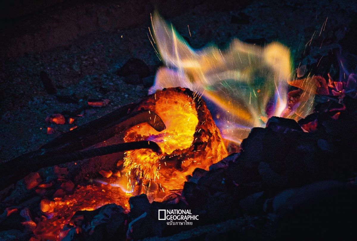 หลอมทองแดงและดีบุกสัดส่วน 8 : 2 ด้วยไฟแรงกล้า ภาพโดย วิรัตน์ กันฉลาด