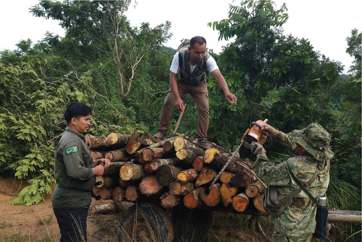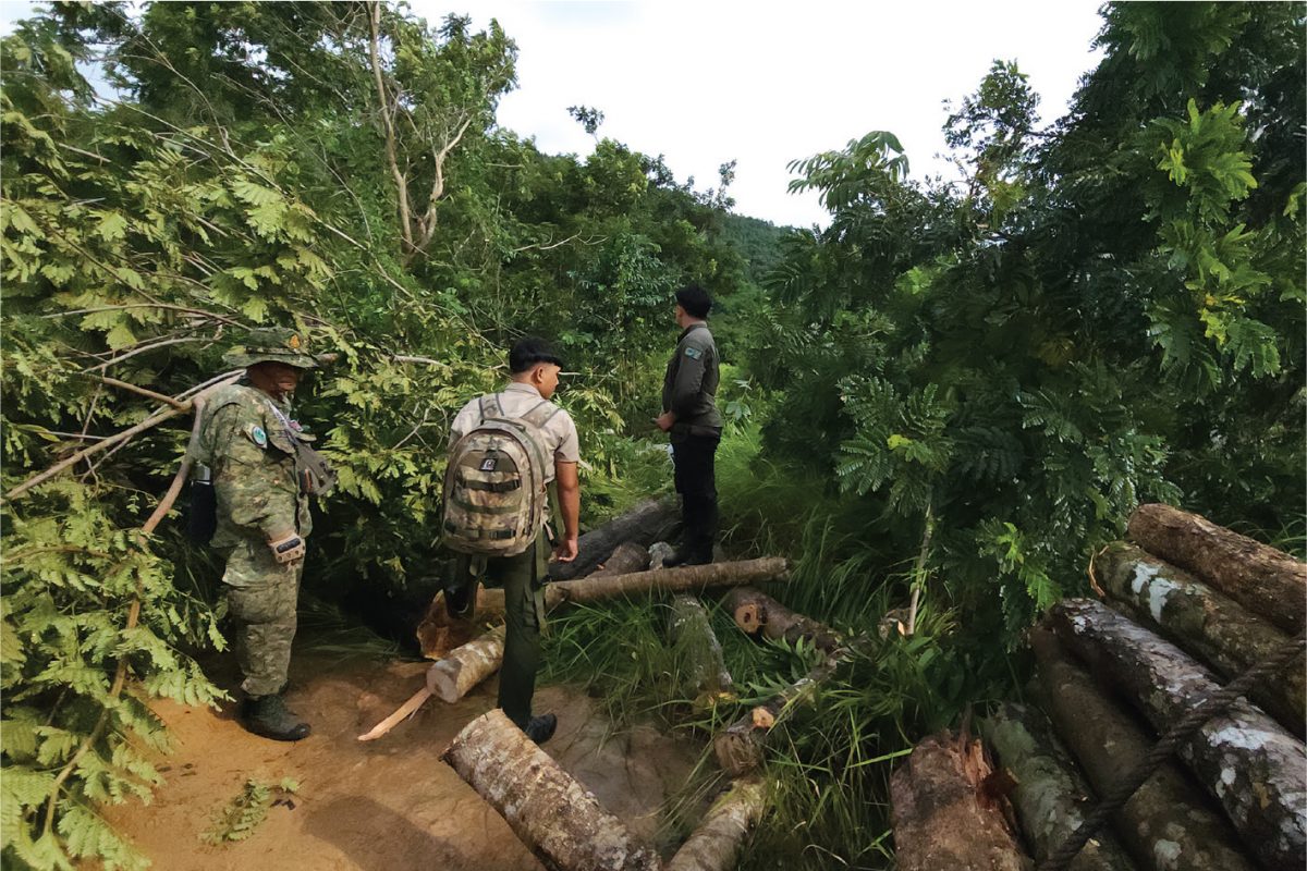วันที่เราไปก็ได้เจอกองไม้ที่ถุกตัดและเลื่อยยนต์ถูกทิ้งเอาไว้แบบสดๆ ร้อนๆ ควาย 2 ตัวที่รอเทียมรถยังยืนเตร่อยู่แถวนั้น เสียงมอเตอร์ไซค์ของกลุ่มพวกเราคงเตือนพวกเขาให้หนีไปก่อน ถ้าจับได้จะโดนอะไร ถ้าเป็นไม้ทั่วไป ก็ต้องไปจ่ายค่าปรับกันที่สถานีตำรวจ ถ้าเป็นไม้ต้องห้ามก็ถึงกับต้องนอนคุก เลื่อยยนต์ อุปกรณ์ดักสัตว์ก็ต้องถูกยึดทั้งหมด