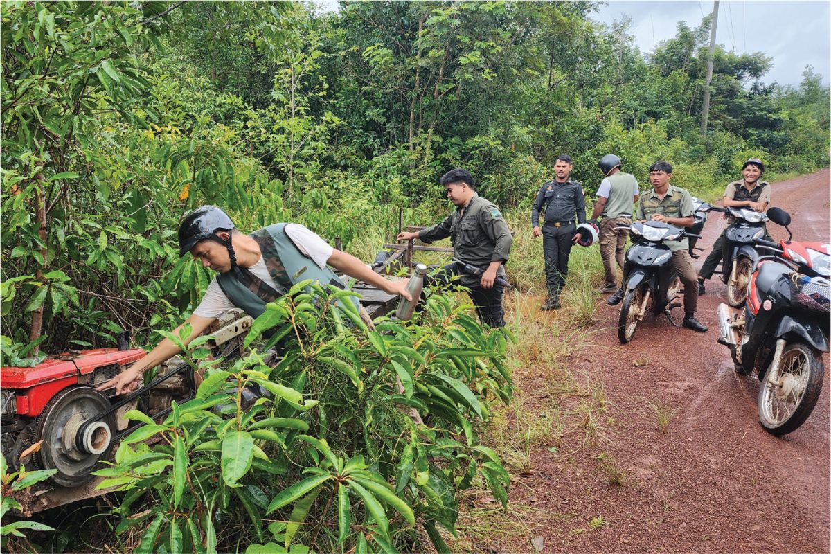 อีกกิจกรรมหนึ่ง ที่เราสนใจมากที่สุด คือกิจกรรมติดตามการลาดตระเวนของกลุ่ม Wildlife Allience ซึ่งเป็นองค์กรนานาชาติที่ทำงานอนุรักษ์ป่าและสัตว์ป่าในกัมพูชา ดำเนินงานมากมากกว่า 10 ปี พวกเขาทำงานร่วมกับตำรวจป่าไม้และทหารจากกองทัพในการลาดตระเวนทุกวัน ตรวจจับการกระทำผิดกฎหมายในพื้นที่อุทยานแห่งชาติ ตั้งแต่การช่วยชีวิตสัตว์ป่า การเก็บกู้กับดักสัตว์ และการยึดอุปกรณ์ผิดกฎหมาย (เช่น เลื่อยยนต์ ซึ่งเป็นอุปกรณ์ต้องห้าม เว้นแต่จะได้รับสัมปทานป่าไม้ ถ้าใช้แค่ขวานไม่ถือว่าผิด) หากจับได้คาหนังคาเขา ตำรวจก็เข้าจับกุมได้ หรือบางครั้งก็ไม่อาจหลีกเลี่ยงการปะทะกัน