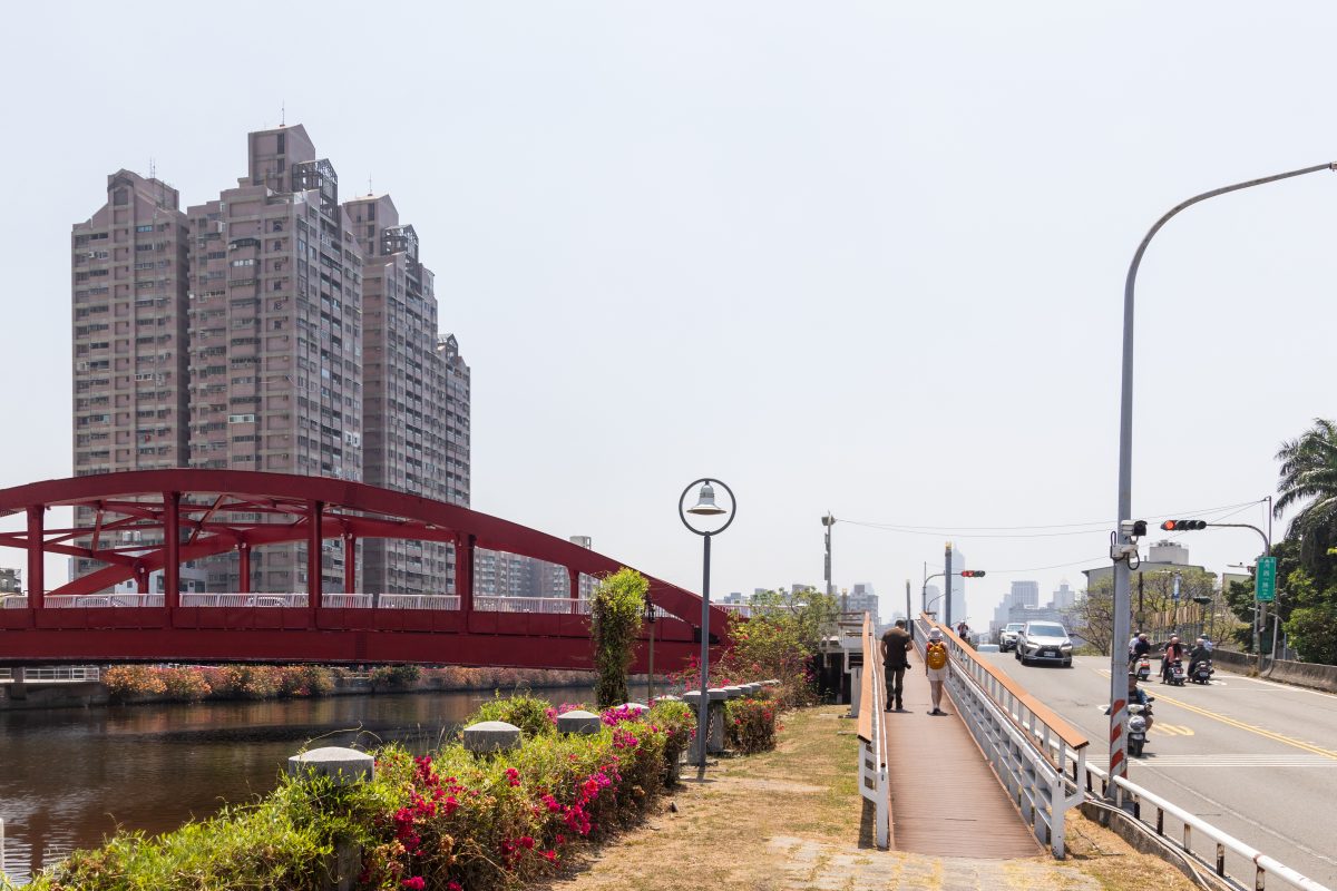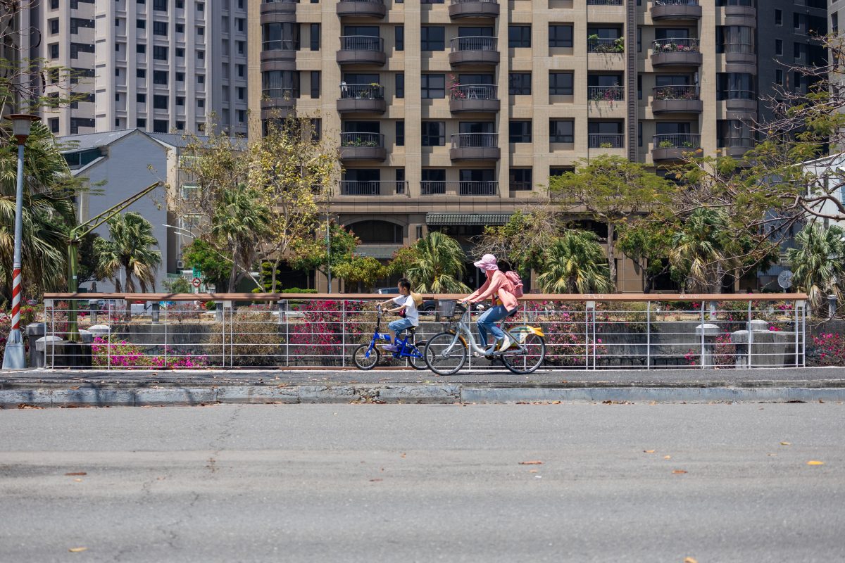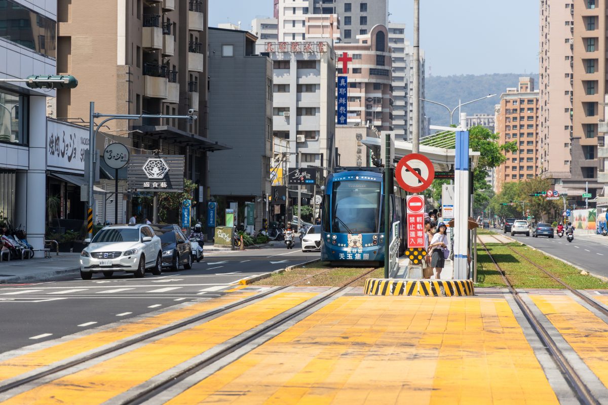 หนึ่งในความพิเศษของเมืองเกาสงคือการมีสายรถราง หรือรถไฟฟ้ารางเบาวนรอบเมือง (LRT) ซึ่งแม้แต่เมืองหลวงไทเปเองก็ไม่มีรถรางในระดับพื้นดินเช่นนี้ เราจึงนึกสนุกลองนั่งรถรางรอบเมืองนี้ลงที่สถานี Makadao ใกล้กับแม่น้ำอ้ายเหอ (Love River) แม่น้ำสายสำคัญที่ไหลผ่านใจกลางเมืองเกาสง ซึ่งเชื่อมต่อกับทะเลโดยตรง และยังมีเส้นทางปั่นจักรยานเลียบแม่น้ำอีกด้วย