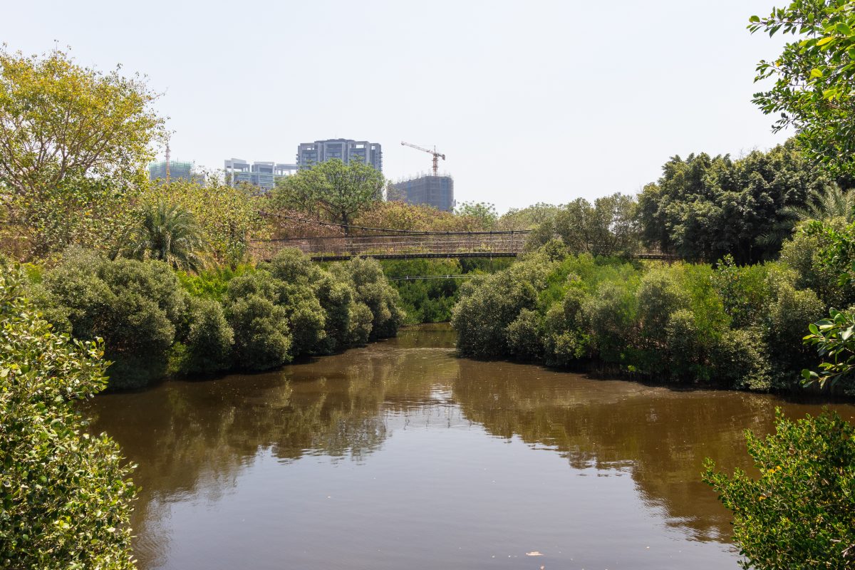 ดังนั้น ระหว่างที่เราเดินเลียบทางเดินเท้าข้างๆ สวนพื้นที่ชุ่มน้ำ ซึ่งมีถนนเพียงหนึ่งเส้นกั้นเรากับแม่น้ำอ้ายเหอไว้ เกิดเป็นภาพพุ่มไม้ป่าชายเลนเลียบขนานกันไป ช่องว่างระหว่างแมกไม้เผยให้เห็นผืนน้ำธรรมชาติในสวนขนาดย่อมที่เชื่อมต่อกับแม่น้ำมาด้วย เราจึงได้เห็นทั้งนกที่บินวนอยู่ตามป่าชายเลน นกน้ำพื้นถิ่นที่อยู่ผืนน้ำในสวน และถ้าลองสังเกตดูดีๆ ก็อาจจะเห็นสัตว์ที่อยู่ระบบนิเวศป่าชายเลน เช่นสัตว์จำพวกกบ หรือปลาชนิดต่างๆ