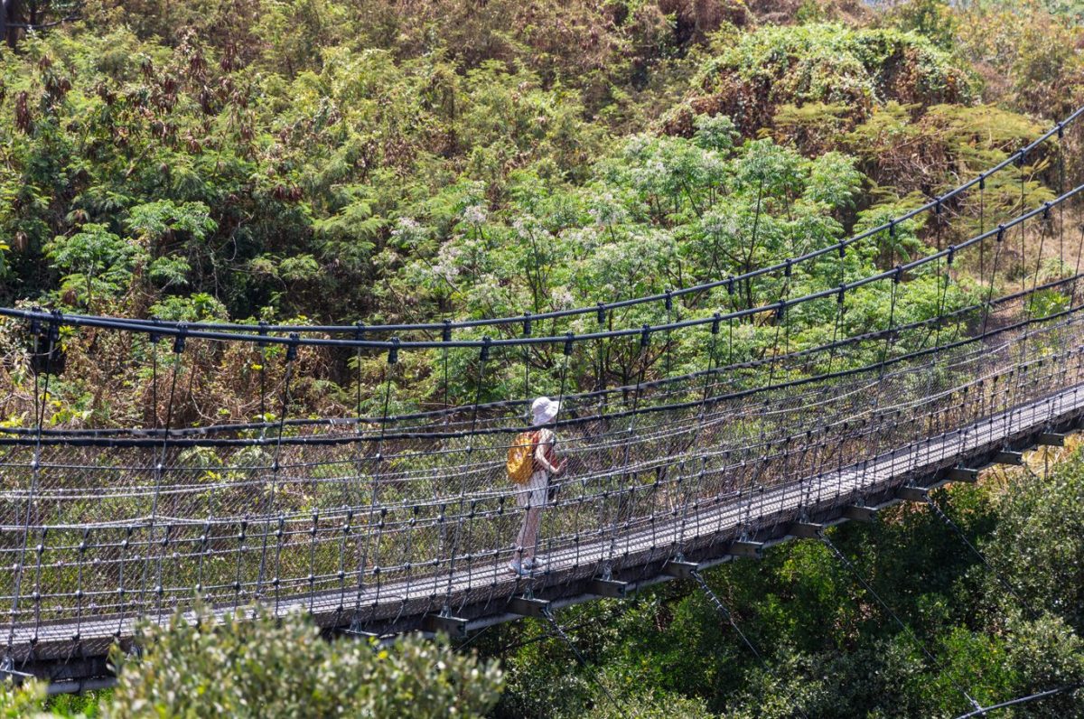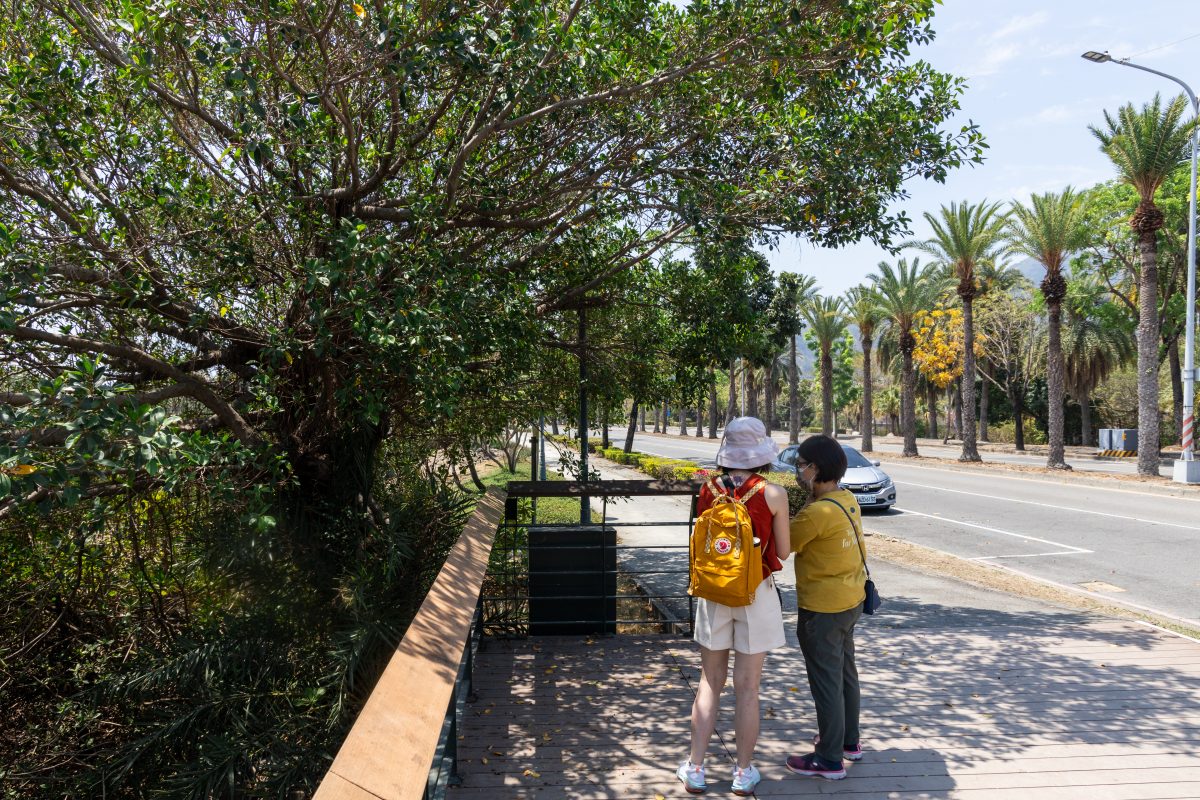 หากได้เดินชมสวนแห่งนี้ เราแนะนำให้มาเริ่มต้นที่อาคารศูนย์ข้อมูลนักท่องเที่ยว อันเปิดอาคารที่เปิดโล่ง รับลมธรรมชาติที่พัดมาจากแมกไม้ในสวนได้เต็มที่ เมื่อขึ้นไปชั้นบนสุดเราก็จะได้เห็นภาพของบรรดาแมกไม้ในสวน ที่เหนือขึ้นไปจะเป็นภาพของตึกสูงในเมืองเกาสง ถือเป็นภาพแสดงที่เราให้เราได้เห็นว่าระบบนิเวศทางธรรมชาติขนาดใหญ่สามารถอยู่ร่วมกันกับเมืองใหญ่ได้ และจากจุดนี้เองเราจะได้พบกับสะพานแขวนที่ข้ามแหล่งน้ำขนาดใหญ่ภายในสวน และถือเป็นจุดเริ่มต้นในเส้นทางการเดินป่าเล็กๆ ในใจกลางเมืองใหญ่แห่งนี้