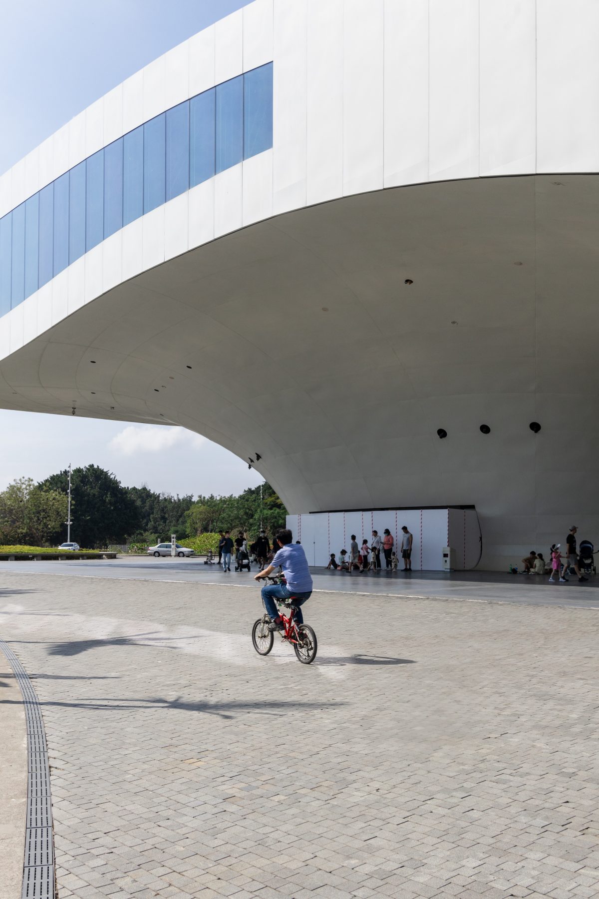 ดังนั้น ในตอนที่เราได้ไปเยือนศูนย์แห่งนี้ แม้จะเป็นช่วงเวลาบ่ายแก่ๆ ที่ไม่ได้มีการแสดง สังเกตจากประตูเข้าอาคารที่ปิดเอาไว้ แต่พื้นที่รอบๆ อาคารกลับมีชีวิตชีวาด้วยชาวเมืองเกาสงที่เข้ามาทำกิจกรรมอันหลากหลายภายใต้งานสถาปัตยกรรมที่สวยงาม ศูนย์ศิลปะแห่งนี้จึงทำหน้าที่เป็นพื้นที่สาธารณะในร่มซึ่งชาวเมืองสามารถเข้ามาใช้งานและพักผ่อนหย่อนใจตามความสะดวกของตัวเอง และมีเจ้าหน้าที่รักษาความปลอดภัยคอยดูแลความเรียบร้อยให้เป็นอย่างดี