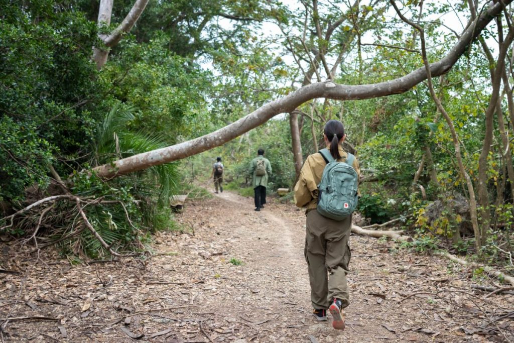 ทางเดินคอนกรีตสลับกับสะพานไม้ยังคงความเป็นธรรมชาติแท้ ๆ เอาไว้ด้วยป่าไม้เขียวครึ้ม และเป็นบ้านของสัตว์ป่าหลากชนิดพันธุ์ โดยเฉพาะลิง จนได้ฉายาว่า “ภูเขาลิง” ลิงเหล่านี้เป็นสัตว์ป่าที่คุ้นเคยกับนักท่องเที่ยว การจับต้อง ทำร้าย และให้อาหารลิงเป็นสิ่งต้องห้ามอยู่แล้ว แต่ที่เราห้ามไม่ได้คือเหล่าลิงที่จ้องจะ “เล่น” กับเราต่างหาก ระวังหมวก แว่นตา และขวดน้ำสีสวย ๆ ให้ดี เผลอแป๊บเดียวอาจจะไปอยู่ในมือเจ้าลิงโดยไม่รู้ตัว