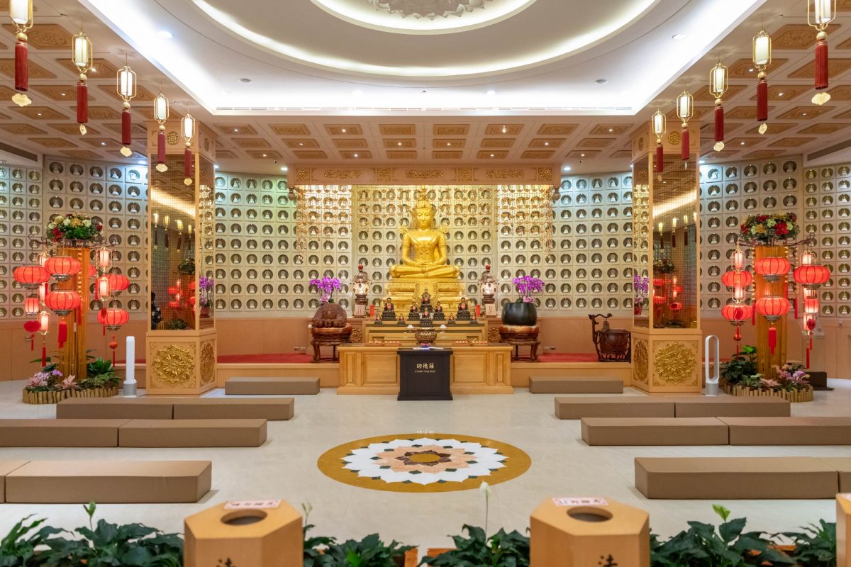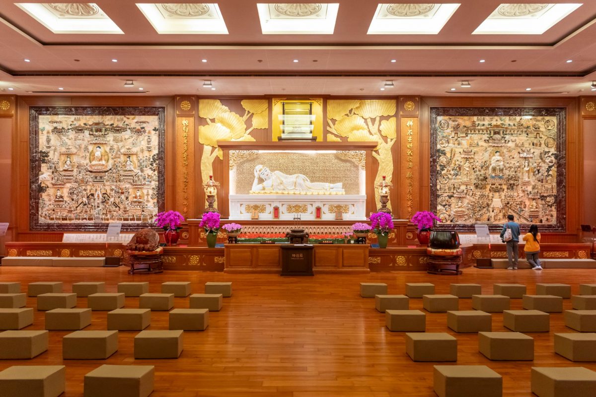 ด้านในอาคารยังมีห้องพิพิธภัณฑ์พุทธศาสนา ซึ่งบอกเล่าประวัติศาสตร์ของพุทธศาสนาตั้งแต่เริ่มต้นไปจนถึงนิกายมหายาน มีหอพระพุทธรูปหยก (Jade Buddha Shrine) ประดิษฐานพระพุทธรูปหยกขาวและพระบรมสารีริกธาตุพระเขี้ยวแก้ว เราเห็นผู้มาเยือนหลายคนนั่งนิ่ง ๆ อยู่พักใหญ่ อาจตั้งจิตอธิษฐานหรือเจริญสติสงบใจ หอพระแห่งนี้ดูเหมือนจะออกแบบมาเพื่อการนั้นด้วย