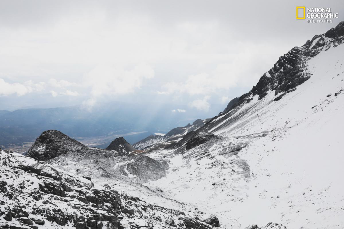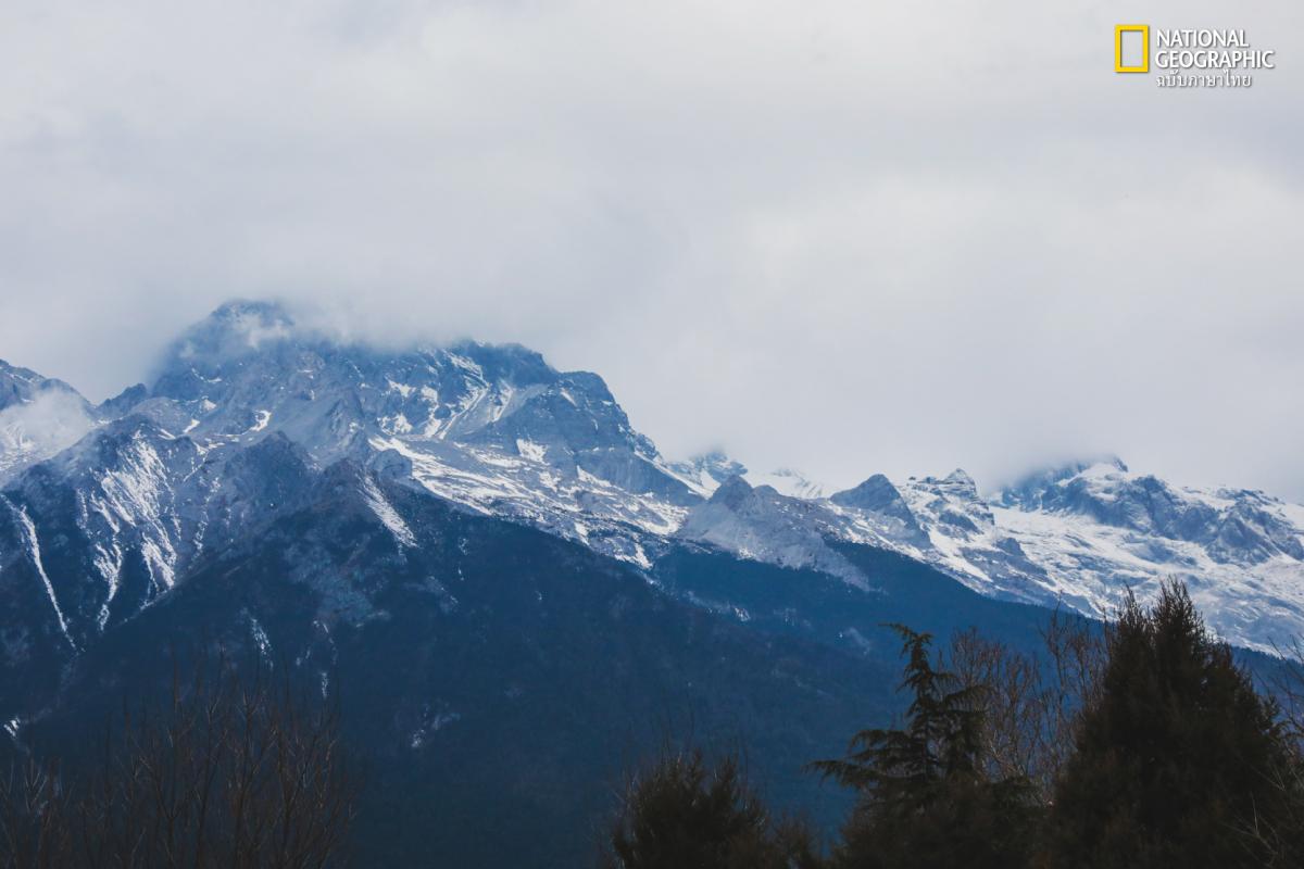ยอดเขาสูงเหนือหลังคาบ้านเรือนในเมืองเก่า นี่คือภูเขาหิมะมังกรหยกหรือ อวี้หลงเสวี่ยซาน ผู้พิทักษ์ศักดิ์สิทธิ์และแหล่งกำเนิดตำนาน สำหรับนักเดินทางแล้ว ที่นี่ไม่ใช่แค่ภูเขา แต่เป็นฉากหลังที่สมบูรณ์แบบที่สุดสำหรับสำหรับใครหลายคนในการบันทึกภาพ ในอดีตเคยมีนักสำรวจมาขึ้นถึงยอดสุดในปี 1987 และเป็นครั้งเดียวที่มีการสำรวจ จากนั้นก็มีการสำรวจเพิ่มนับสิบครั้งแต่ไม่ประสบความสำเร็จ สำหรับชาวน่าซี (Naxi) ภูเขาลูกนี้คือที่สถิตของ “เทพเจ้าซ่านตั๋ว” การพยายามเหยียบย่ำยอดเขาจึงไม่ต่างจากการลบหลู่ศรัทธาอันศักดิ์สิทธิ์ ปัจจุบัน รัฐบาลจีนได้สั่งห้ามการปีนสู่ยอดเขาอย่างเด็ดขาด ทั้งเพื่อรักษาความปลอดภัยและเพื่อรักษาสันติภาพระหว่าง “มนุษย์” และ “เทพเจ้า” ในทุก ๆ ปีจะมี “เทศกาลซ่านตั๋ว” (วันที่ 8 เดือน 2 ของจีน) ที่ชาวน่าซีจะมารวมตัวกันเพื่อบูชาภูเขา แสดงให้เห็นว่าความศรัทธาต่อภูเขาคือศูนย์กลางที่ยึดโยงคนในเผ่าไว้ด้วยกัน