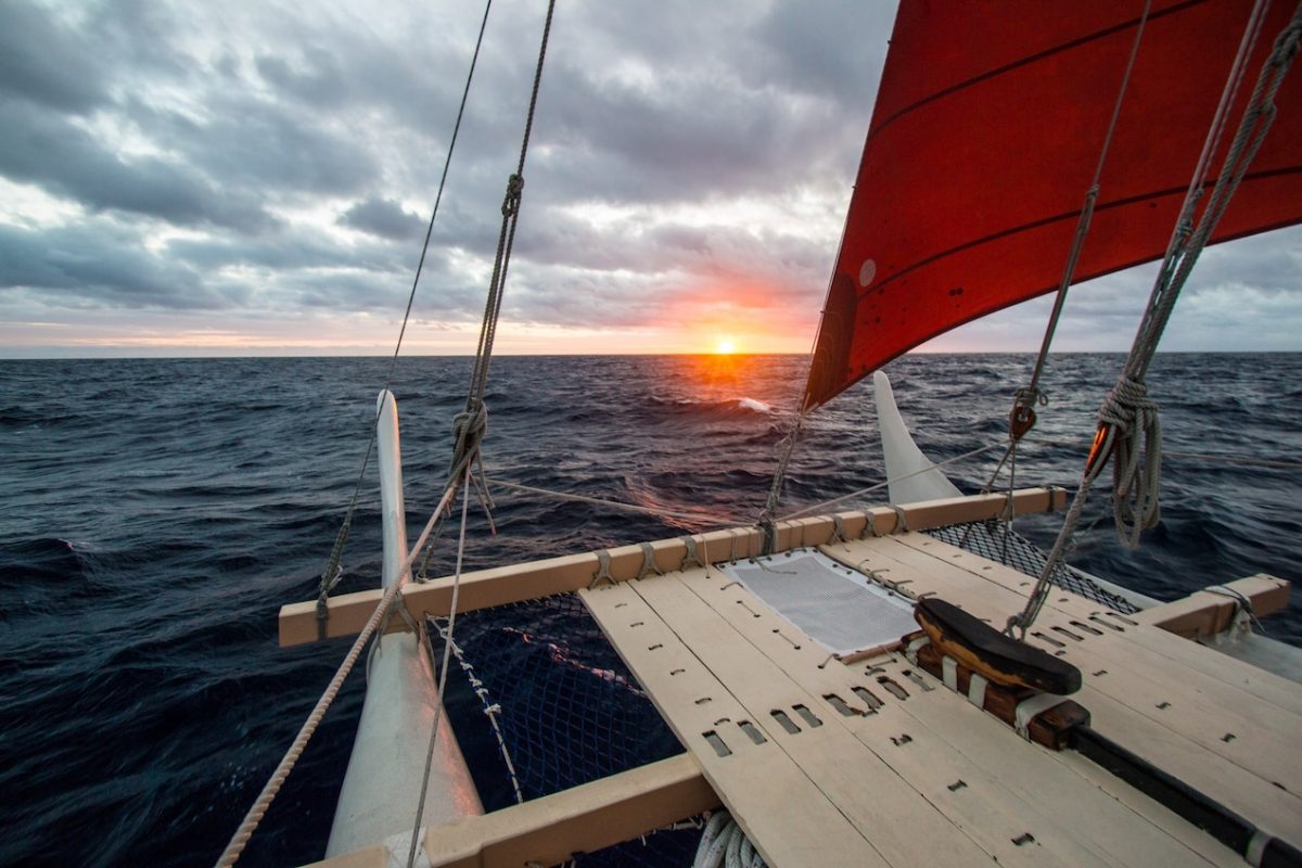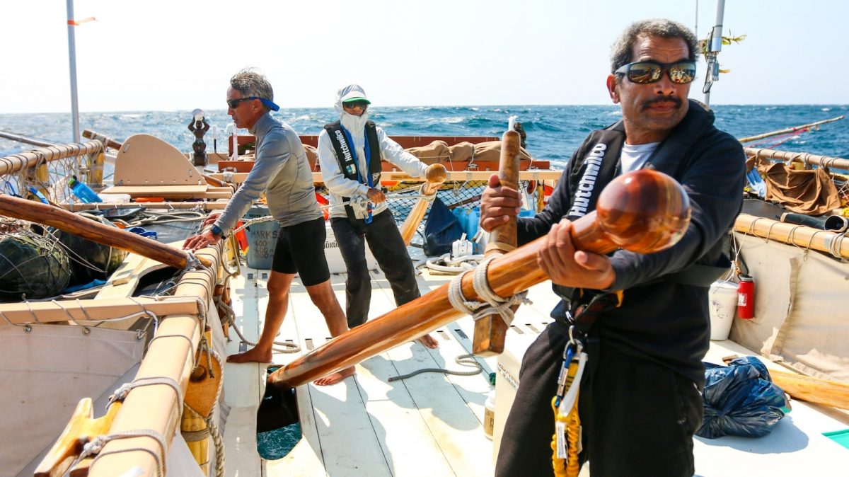 Polynesian Voyaging Society (PVS) แล่นเรือในทะเลแสนกว้างใหญ่โดยไร้ความช่วยเหลือจากเทคโนโลยีนำทางสมัยใหม่ เรือแคนูสำรองสองลำที่แล่นข้ามมหาสมุทรและรอบโลกในช่วงไม่กี่ปีที่ผ่านมานี้ ออกแบบมาเพื่อจำลองเรือแบบดั้งเดิมที่เคยแล่นในมหาสมุทรแปซิฟิก ดวงอาทิตย์กับดวงดาวเป็นเข็มทิศ และคลื่นกับลมก็เป็นแผนที่ “ทุกอย่างต้องใช้ใจล้วนๆ” คามาลู ผู้อำนวยการเดินทางบอก “คุณต้องติดตามทิศทางลม ความเร็วเรือ แล้วปรับใบเรือ”