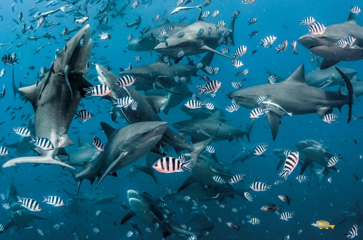 นอกชายฝั่งทางตอนใต้ของเกาะวีตีเลวู ฉลามหัวบาตร ถูกดึงดูดจากเหยื่อล่อที่นักท่องเที่ยวทิ้งลงมาจากบนผิวน้ำ ฉลามแปดชนิดและปลาอื่นๆอีกอย่างน้อย 400 ชนิดอาศัยอยู่ในเขตสงวนทางทะเลชาร์กรีฟ