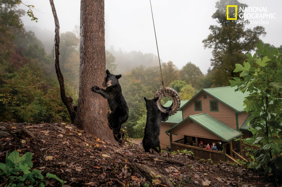 อันที่จริง เป็นเรื่องยากที่จะนึกภาพว่าหมีดำจะปรับตัวให้ใช้ชีวิตในแอชวิลล์ได้ดีเช่นนี้ ในเมืองก้าวหน้าที่ซุกตัวอยู่ในเทือกเขาบลูริดจ์ และมีประชากรประมาณ 95,000 คนแห่งนี้ พวกหมีเดินท่องไปตามถนนย่านพักอาศัยตอนกลางวันแสกๆ ปีนขึ้นระเบียงและชานบ้านคน ชาวเมืองแอชวิลล์บางคนยอมรับเพื่อนบ้านชาวหมี และเกือบทุกคนที่คุณคุยด้วยจะมีคลิป ประสบการณ์เจอหมีครั้งล่าสุดในโทรศัพท์ตัวเองทั้งนั้น
