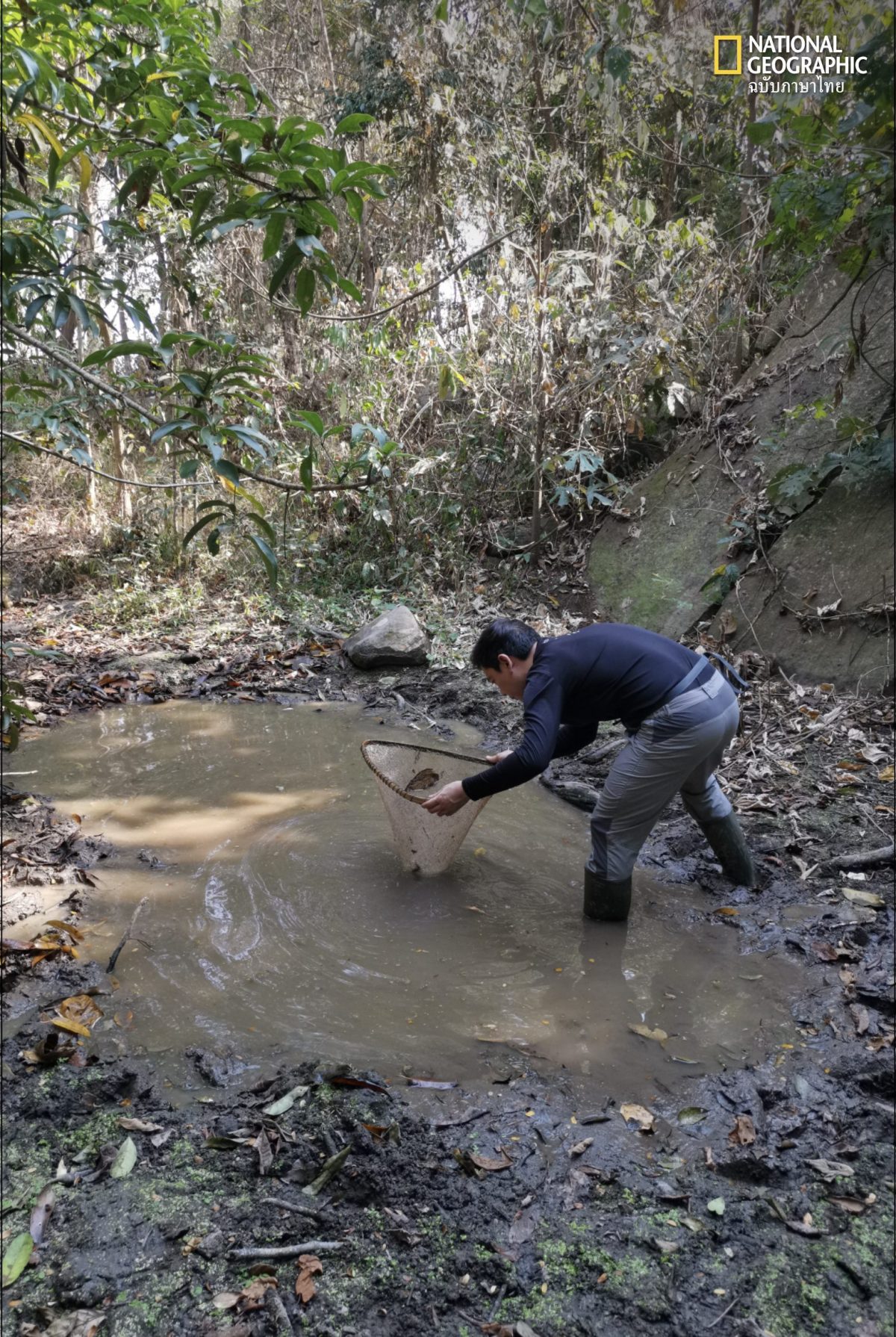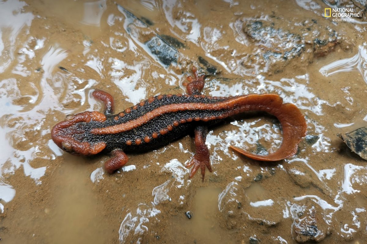 ตอนที่เราเจอเขา เขากำลังหลบร้อนอยู่ใต้โคลน ผมว่าเขาอาจจะไม่มีทางเลือกด้วย เลยต้องมาอยู่ที่นี่ ซึ่งไม่ใช่เรื่องปกติเลยสำหรับกะท่างน้ำในสกุลย่อย Tylototriton ที่ต้องใช้แอ่งน้ำสะอาดในการ ผสมพันธุ์ เกิด และเติบโต
