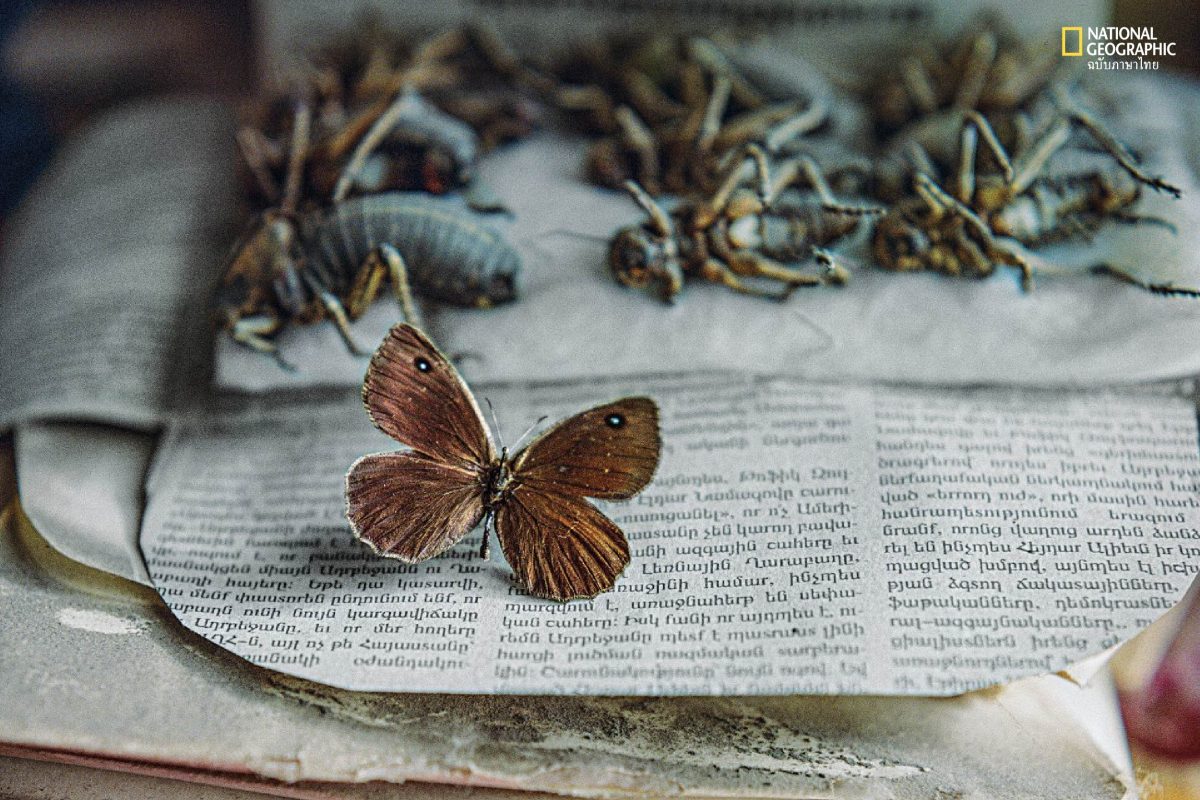 เราเป็นคนคอเดียวกันครับ” เขาพูดถึงพ่อฉัน ซึ่งเป็นรุ่นพี่ปาร์เคฟ 20 ปี “เขาเป็นครูผม เป็นกุนซือของผม” ปาร์เคฟหนีจากอาเซอร์ไบจานท่ามกลางเหตุตึงเครียดทางชาติพันธุ์เมื่อปี 1989 โดยนำทรัพย์สินล้ำค่าที่สุดติดตัวไปด้วย นั่นคือผีเสื้อสตัฟฟ์จำนวน 11 กล่อง ภายในบ้านที่มีเครื่องเรือนไม่กี่ชิ้น เวลาเหมือนหยุดนิ่งอยู่ในช่วงปลายทศวรรษ 1980 ตู้เย็นยูเครนยุคโซเวียตใบเก่าเทอะทะเป็นที่เก็บด้วงกว่างที่เขาสะสมไว้ ในห้องหนึ่ง ใต้เตียงนอน ฉันสังเกตเห็นเป้ผ้าใบสีเขียวเหมือนกับของพ่อ ภาพนั้นทำให้ความทรงจำผุดขึ้นมา ตอนที่พ่อจัดกระเป๋าเตรียมไปจับผีเสื้อ บรรจุทั้งชีวิตเขาลงในเป้แบบเดียวกันนี้ ราวกับหมวกไร้ก้นของนักมายากล ในนั้นมีตั้งแต่ขวดโหล ตะเกียงขวดแก้ว กล่องไม้ขีด ชุดเครื่องมือตรึงปีก แถบกระดาษชุบไซยาไนด์ (ยาพิษสำหรับผีเสื้อ) และอื่นๆ อีกสารพัด