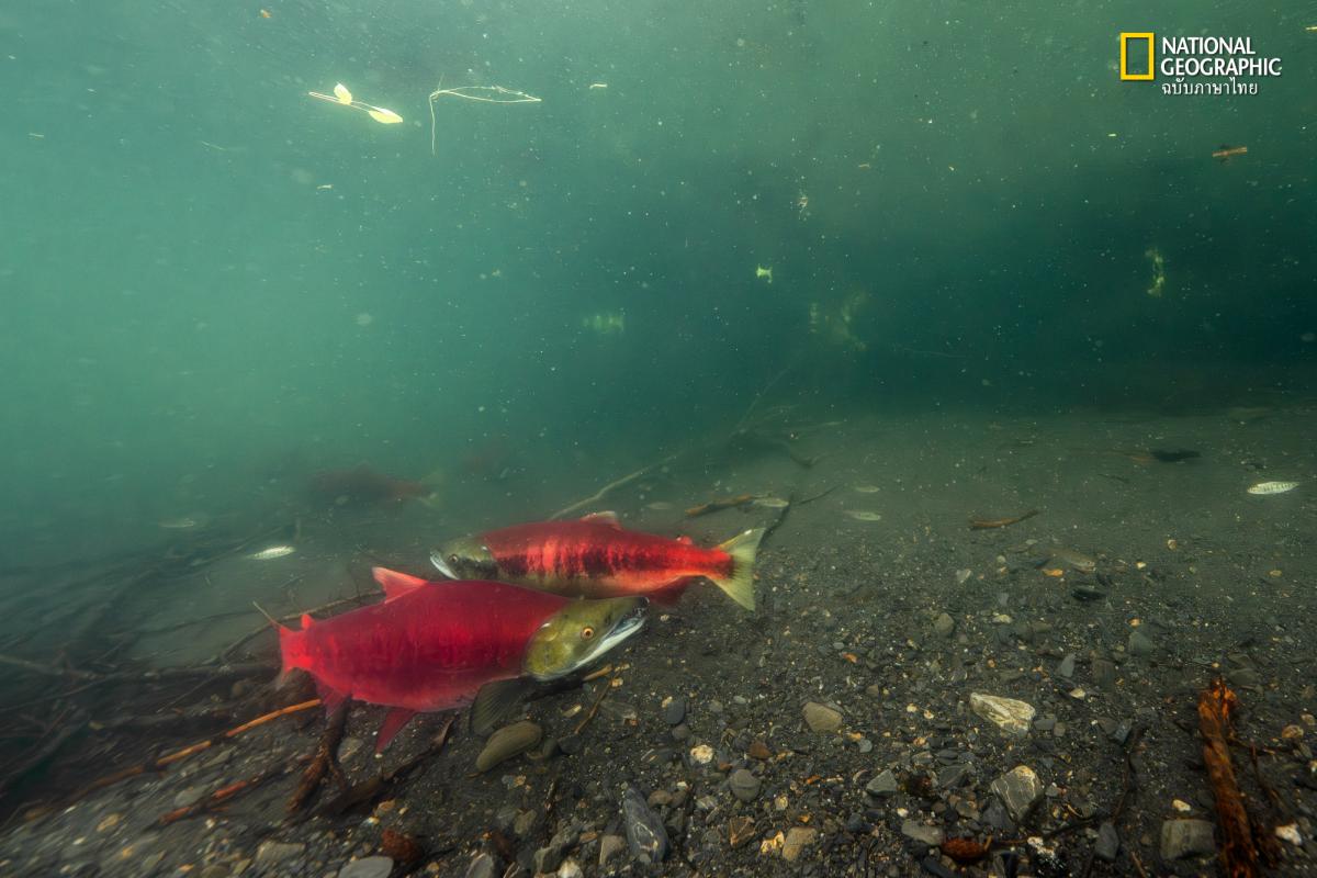Sockeye salmon swim just above the gravel bed, waiting for high tide to ascend the river towards the exact streams where they were born to spawn and die.