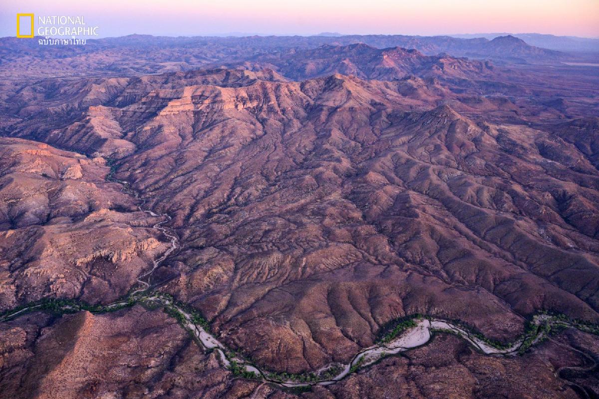 แม่น้ำและลำธารสลักเสลาให้เกิดฉนวนเชื่อมต่อที่สำคัญสำหรับสัตว์ป่าในแถบเทือกเขาที่เรียกกันว่า หมู่เกาะสกาย ซึ่งคร่อมอยู่ระหว่างรัฐแอริโซนาและนิวเม็กซิโกของสหรัฐฯ และรัฐโซโนรากับชิวาวาของเม็กซิโก ในภาพนี้ แม่น้ำ กาฆอนโบนีโตเลื้อยผ่านพื้นที่สูงในรัฐโซโนราที่บริหารจัดการโดยองค์กรไม่แสวงกำไร เกวนกาโลสโซโฆส