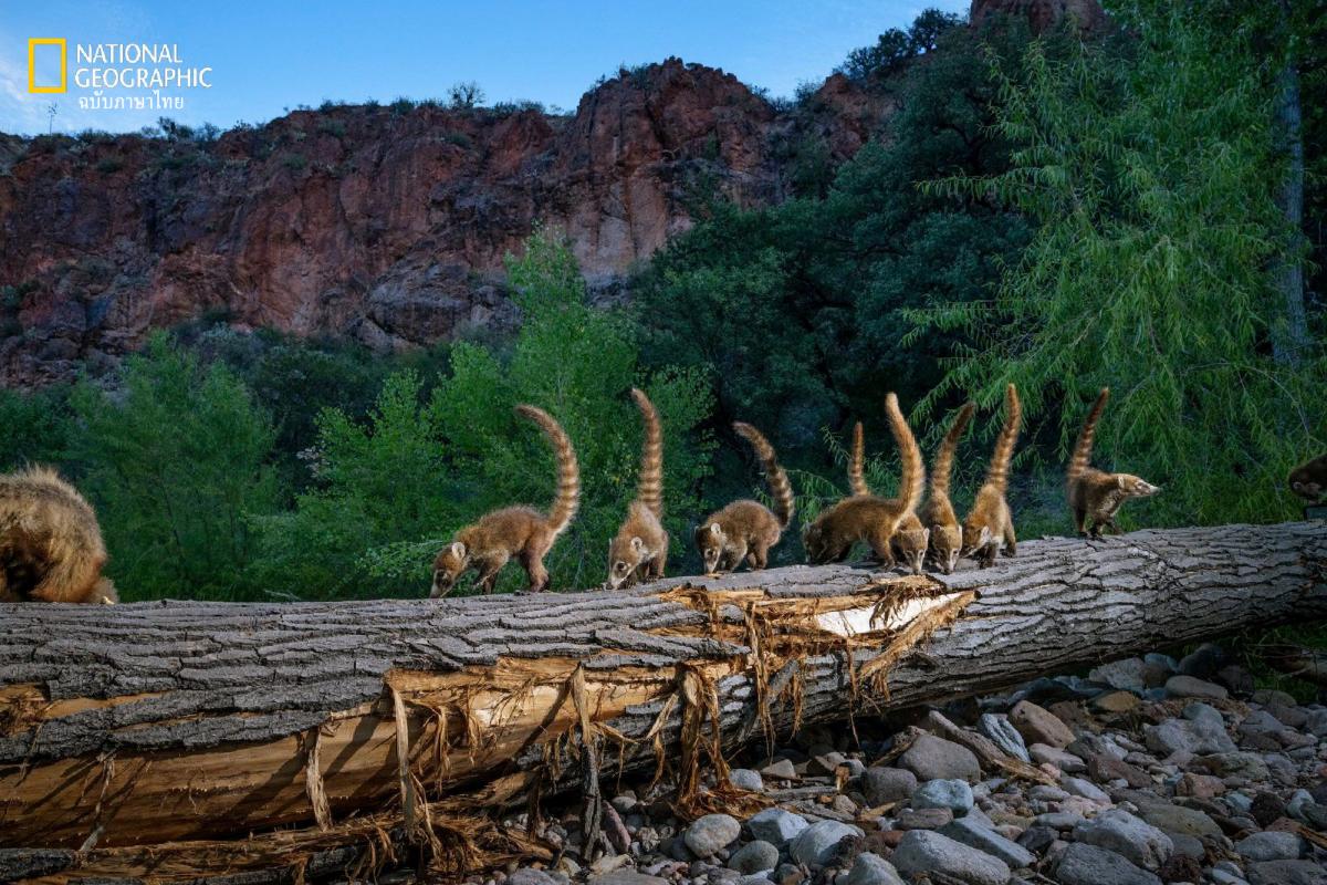 โคอาทีจมูกขาวที่กำลังสำรวจฉนวนเชื่อมต่อริมลำห้วยในเขตทุ่งหญ้าธรรมชาติขององค์กรเกวนกา “หนึ่งในความงดงามของหมู่เกาะสกายก็คือการเป็นพื้นที่ซึ่งสัตว์หลายชนิดเดินทางมาถึงสุดเขตแดนของพวกมันแล้ว” เอมอน แฮร์ริตี ผู้ชำนาญการสัตว์ป่าจากองค์กรไม่แสวงกำไร สกายไอแลนด์แอลิแอนซ์ กล่าว แต่ขณะที่การก่อสร้างกำแพงกั้นพรมแดนยังคงเดินหน้า นักวิจัยหลายคนวิตกว่า โคอาทีในรัฐแอริโซนาอาจถูกตัดขาดจากประชากรกลุ่มใหญ่ในเม็กซิโก ภูมิภาคอเมริกากลาง และอเมริกาใต้