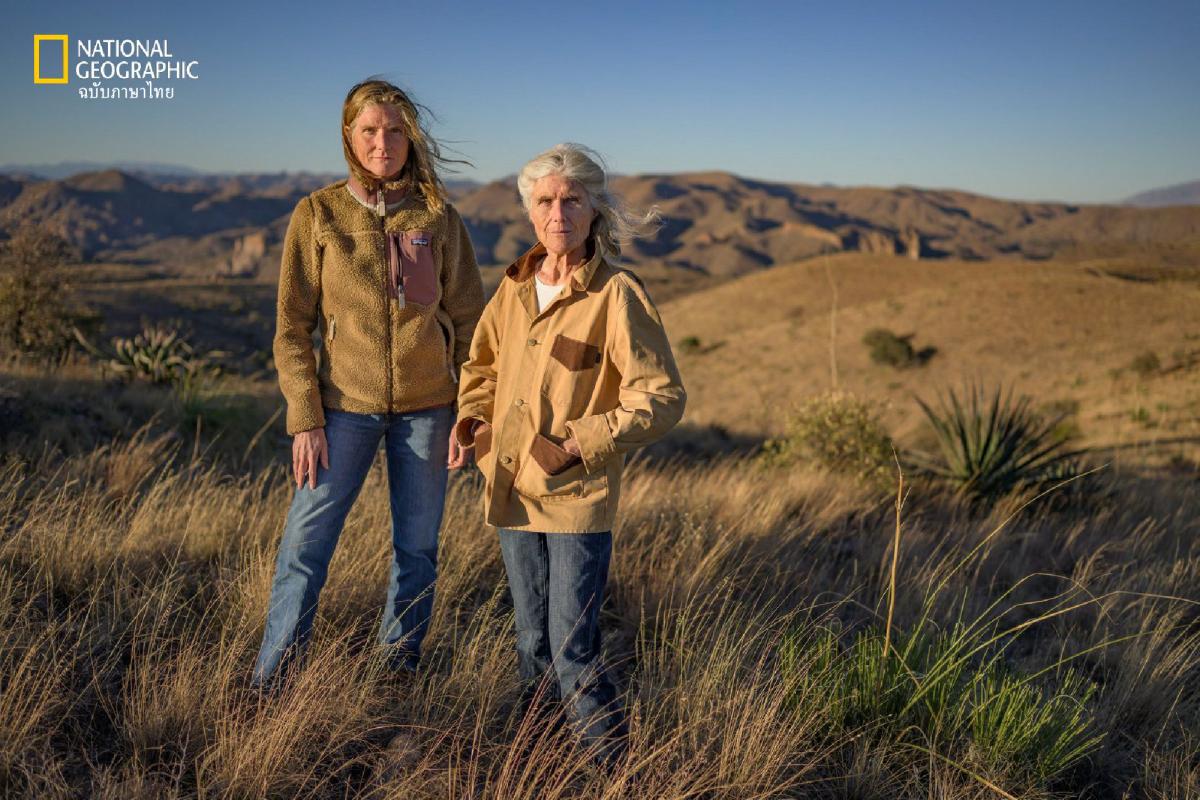 นักอนุรักษ์พื้นที่แถบชายแดนในปัจจุบันอย่างวาเลรี กอร์ดอน (คนซ้าย) ผู้อำนวยการบริหารองค์กรเกวนกาโลสโซโฆสานต่อประเพณีดั้งเดิม ย้อนหลังไปเมื่อทศวรรษ 1980 วาแลร์ คลาร์ก (คนขวา) มารดาของกอร์ดอน เริ่มฟื้นฟูถิ่นอาศัยของสัตว์ป่าภายในไร่ปศุสัตว์ของเธอในรัฐแอริโซนา โดยใช้โครงสร้างหินเรียงเป็นฝายควบคุมการกัดเซาะ เธอก่อตั้ง “เกวนกา” ตามที่เรียกกันย่อๆ เพื่อนำเทคนิคเกษตรกรรมแบบยั่งยืนมาปรับใช้ในวงกว้าง ปัจจุบัน องค์กรนี้บริหารจัดการผืนดินกว้างใหญ่ไพศาลในเขตทุ่งหญ้าธรรมชาติของรัฐโซโนราที่เคยเสื่อมโทรม แต่ตอนนี้เป็นที่อาศัย ของสัตว์ที่เพิ่งนำมาปล่อยคืนสู่ธรรมชาติหลายชนิด ตั้งแต่บีเวอร์และไบซัน ไปจนถึงเสือจากัวร์และสัตว์ผู้ล่าอื่นๆ