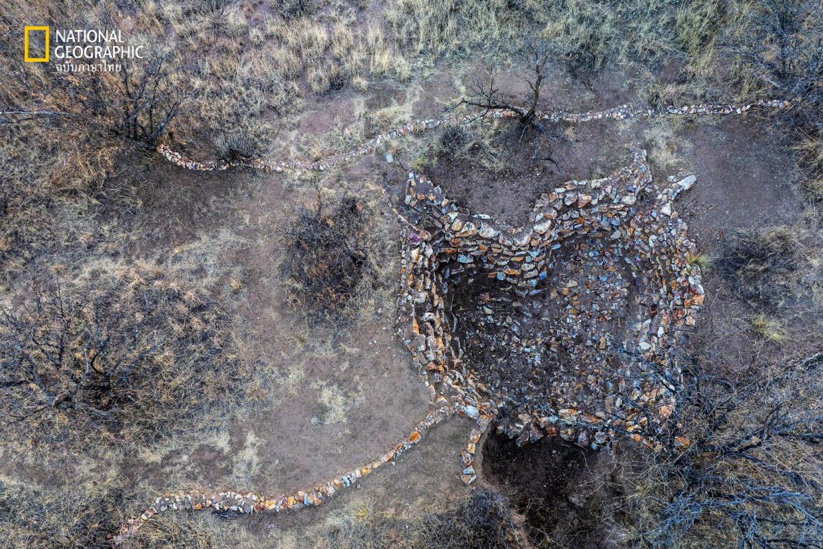 อาสาสมัครจากเครือข่ายบูรณะพื้นที่ชายแดนของรัฐแอริโซนา ช่วยกันทำโครงสร้างจากหินและไม้เพื่อฟื้นฟูลุ่มน้ำ เช่นในบริเวณที่เรียกกันว่า แอ่งซูนี แห่งนี้ เพื่อช่วยชะลอกระแสน้ำ ป้องกันการกัดเซาะ และช่วยให้ความชุ่มชื้นซึม ลงสู่ดิน