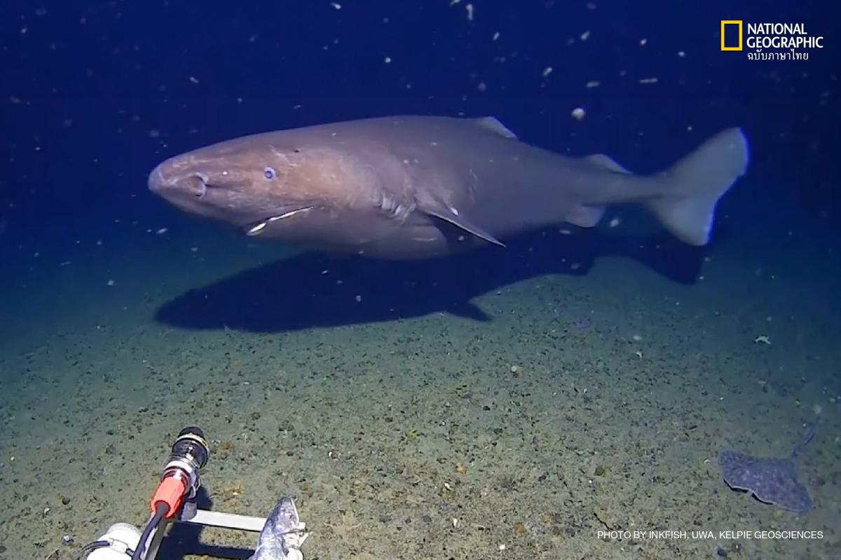 ทีมนักวิทยาศาสตร์จาก Minderoo-UWA Deep-Sea Research Centre สามารถบันทึกภาพฟุตเทจของ “ฉลามสลีปเปอร์” (Sleeper Shark) ได้สำเร็จ ซึ่งถือเป็นหนึ่งในชนิดพันธุ์ที่หาตัวยาก ลึกลับ และมีอายุยืนยาวมากที่สุดชนิดหนึ่งในมหาสมุทร ภาพถ่ายโดย Inkfish, UWA, Kelpie Geosciences
